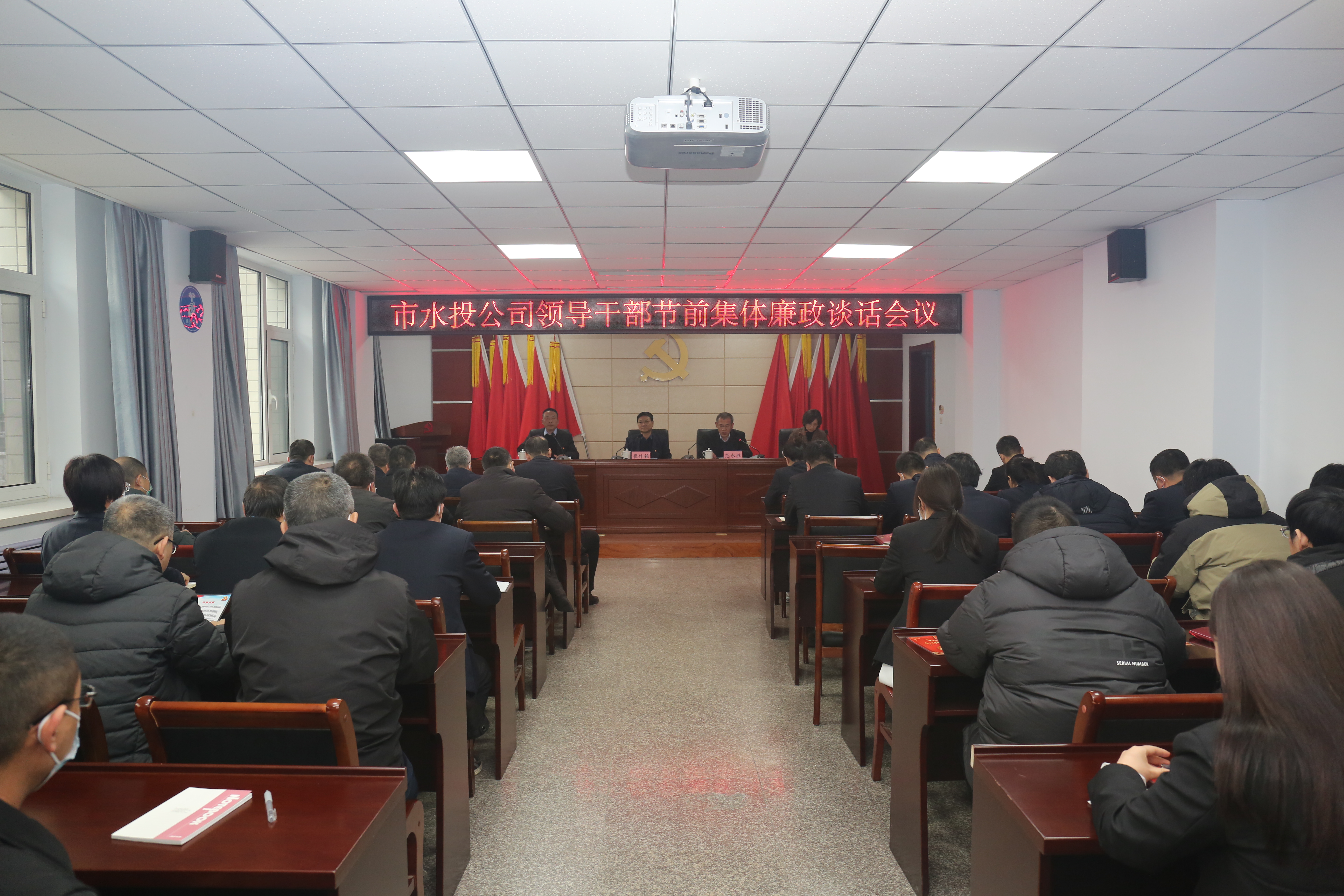 春節(jié)將至,為嚴(yán)格落實(shí)中央八項(xiàng)規(guī)定精神,進(jìn)一步嚴(yán)明紀(jì)律,營(yíng)造風(fēng)清氣正的廉潔過(guò)節(jié)氛圍,1月16日下午,市水投公司召開領(lǐng)導(dǎo)干部節(jié)前集體廉政談話會(huì)議,對(duì)公司全體干部職工進(jìn)行再教育、再提醒。公司及各子公司領(lǐng)導(dǎo)班子成員、機(jī)關(guān)部室全體人員參加。會(huì)議由黨委委員、副總經(jīng)理范永勝主持。