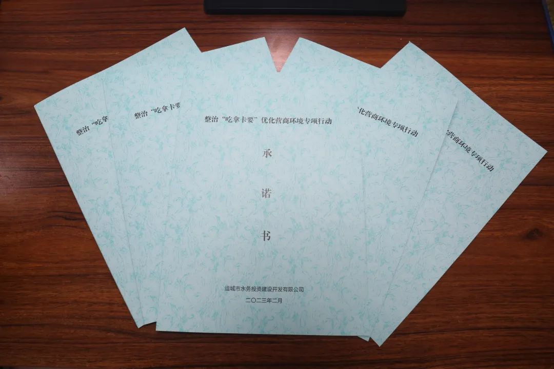 會上,公司黨委委員、紀(jì)委書記王望寬宣讀了市水投公司《整治“吃拿卡要”優(yōu)化營商環(huán)境專項行動實施方案》。根據(jù)此次專項行動提出的30種“吃拿卡要”行為,結(jié)合公司實際,從落實市委市政府、公司黨委的重大決策部署方面;項目推進、業(yè)務(wù)辦理方面;日常工作開展方面;個人生活作風(fēng)建設(shè)方面,制作了水投公司整治“吃拿卡要”優(yōu)化營商環(huán)境專項行動承諾書。