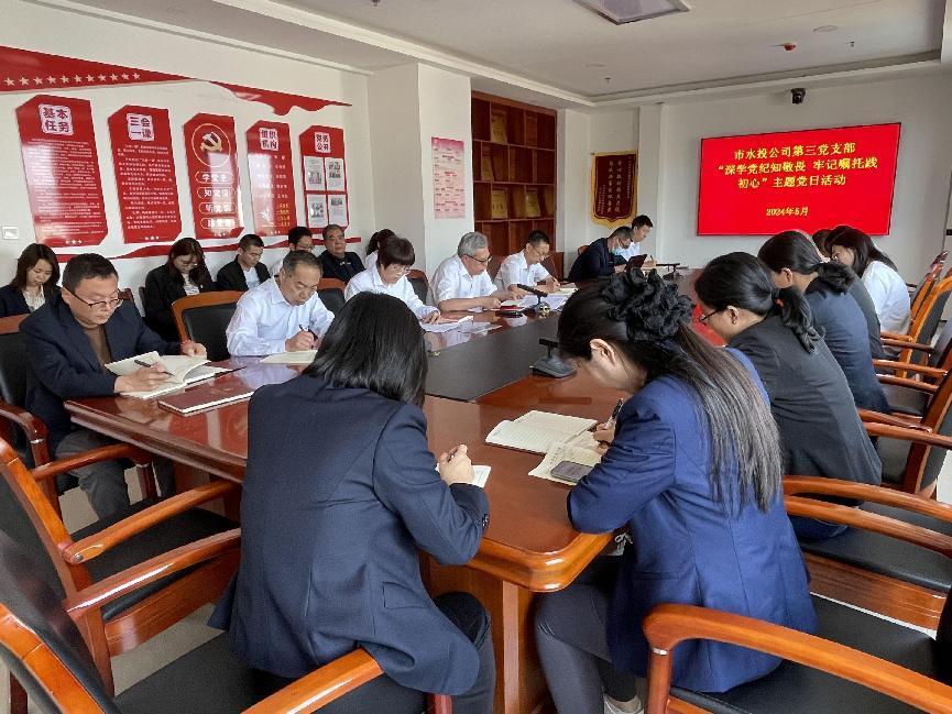 按照市委組織部《關(guān)于認真開展2024年5月黨支部主題黨日活動的通知》要求,結(jié)合水投公司黨委安排部署,5月6日下午,第三支部組織黨員開展了“深學黨紀知敬畏 牢記囑托踐初心”主題黨日活動。