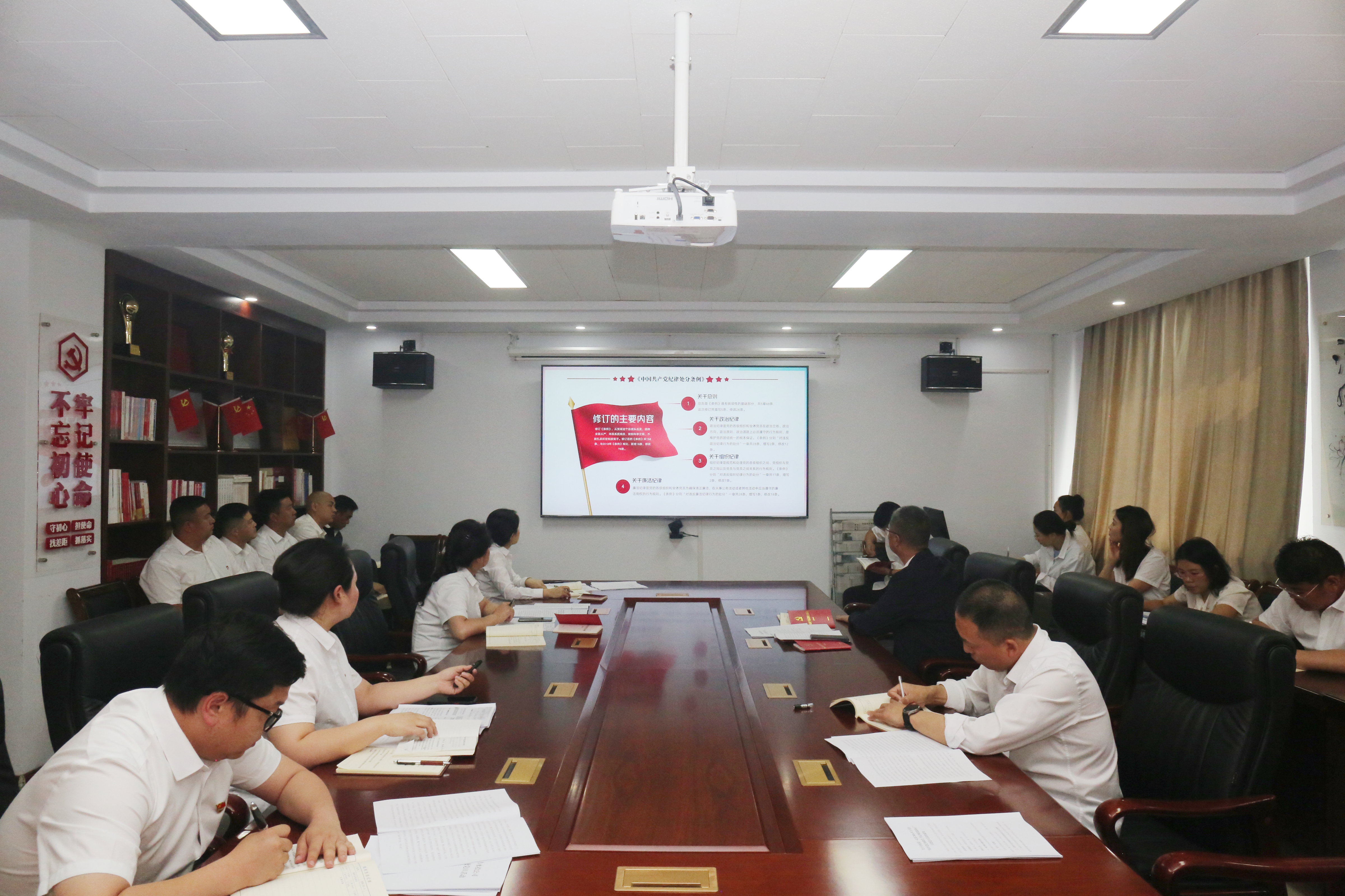 為扎實推進黨紀學習教育走深走實,進一步引導全體黨員干部樹牢責任意識、底線意識、紀律意識,組織委員胡凱菲圍繞《中國共產(chǎn)黨紀律處分條例》修訂的重要意義、新修訂的主要內(nèi)容以及如何抓好《條例》的貫徹執(zhí)行,理論聯(lián)系實際進行授課,帶領參會人員重點對《條例》中新增的、平時容易忽略的、同志們可能存在認識誤區(qū)等違紀行為進行重點學習,引導黨員干部不斷強化紀律意識和規(guī)矩意識,嚴格規(guī)范“八小時”以外言行舉止,自覺抵制不良風氣,從源頭上筑牢遠離腐敗的思想防線。