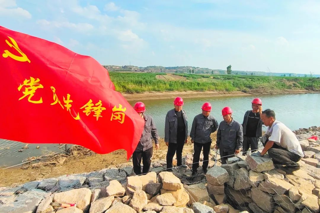 ▲公司黨員志愿者在鹽湖22號堤埝接待調(diào)研學(xué)習(xí)團隊