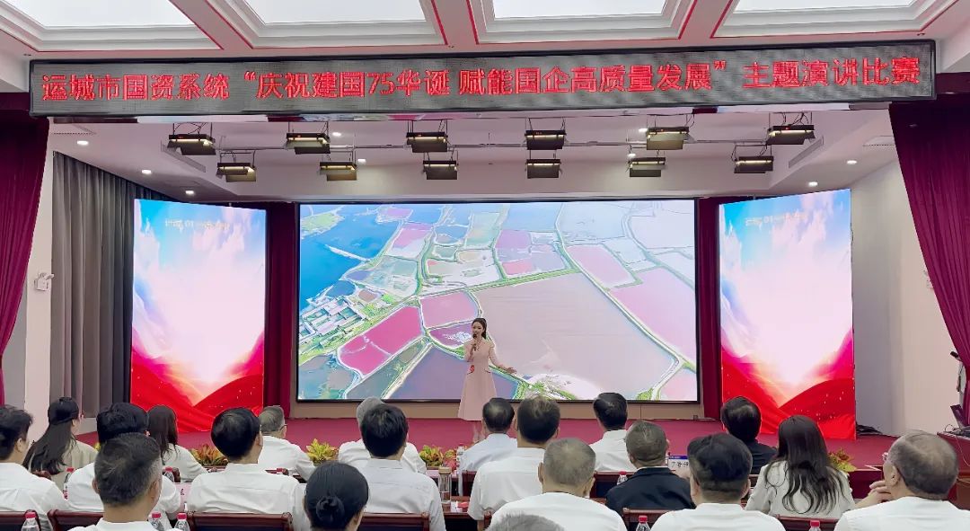 此次比賽有多家市屬國(guó)有企業(yè)共計(jì)18名選手參賽。參賽選手圍繞主題,通過(guò)回顧建國(guó)75周年重大歷史事件、重要?dú)v史節(jié)點(diǎn),結(jié)合自身工作實(shí)際,以富有感染力的語(yǔ)言、飽滿充沛的情感和鮮活的事例,謳歌了新中國(guó)成立以來(lái)取得的巨大成就,抒發(fā)了對(duì)偉大祖國(guó)的熱愛(ài)和贊美之情。我公司參賽選手吳圓媛、樊昕昕分別以《立足新時(shí)代 展現(xiàn)新風(fēng)采》和《“水世界”里的勇士們》為題,以公司鹽湖項(xiàng)目為切入點(diǎn),從不同角度、不同層面展現(xiàn)了在市委市政府的正確領(lǐng)導(dǎo)下、在市國(guó)資委的大力支持下,作為國(guó)企員工的水投人不畏嚴(yán)寒酷暑、不懼風(fēng)雨挑戰(zhàn),齊心協(xié)力用行動(dòng)詮釋初心使命、用奉獻(xiàn)彰顯國(guó)企擔(dān)當(dāng)?shù)墓适拢葜v贏得了全場(chǎng)觀眾的熱烈掌聲和陣陣喝彩。
