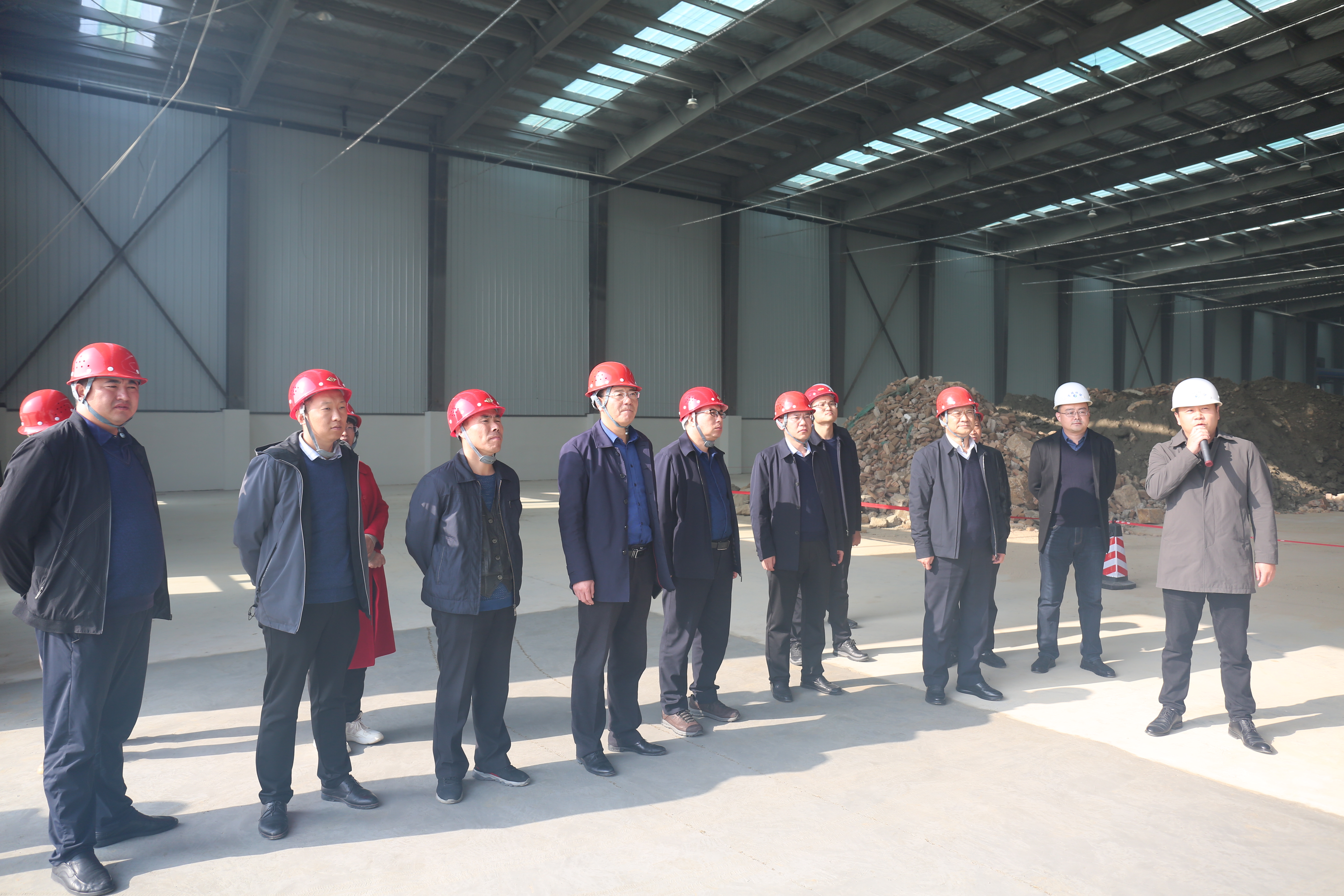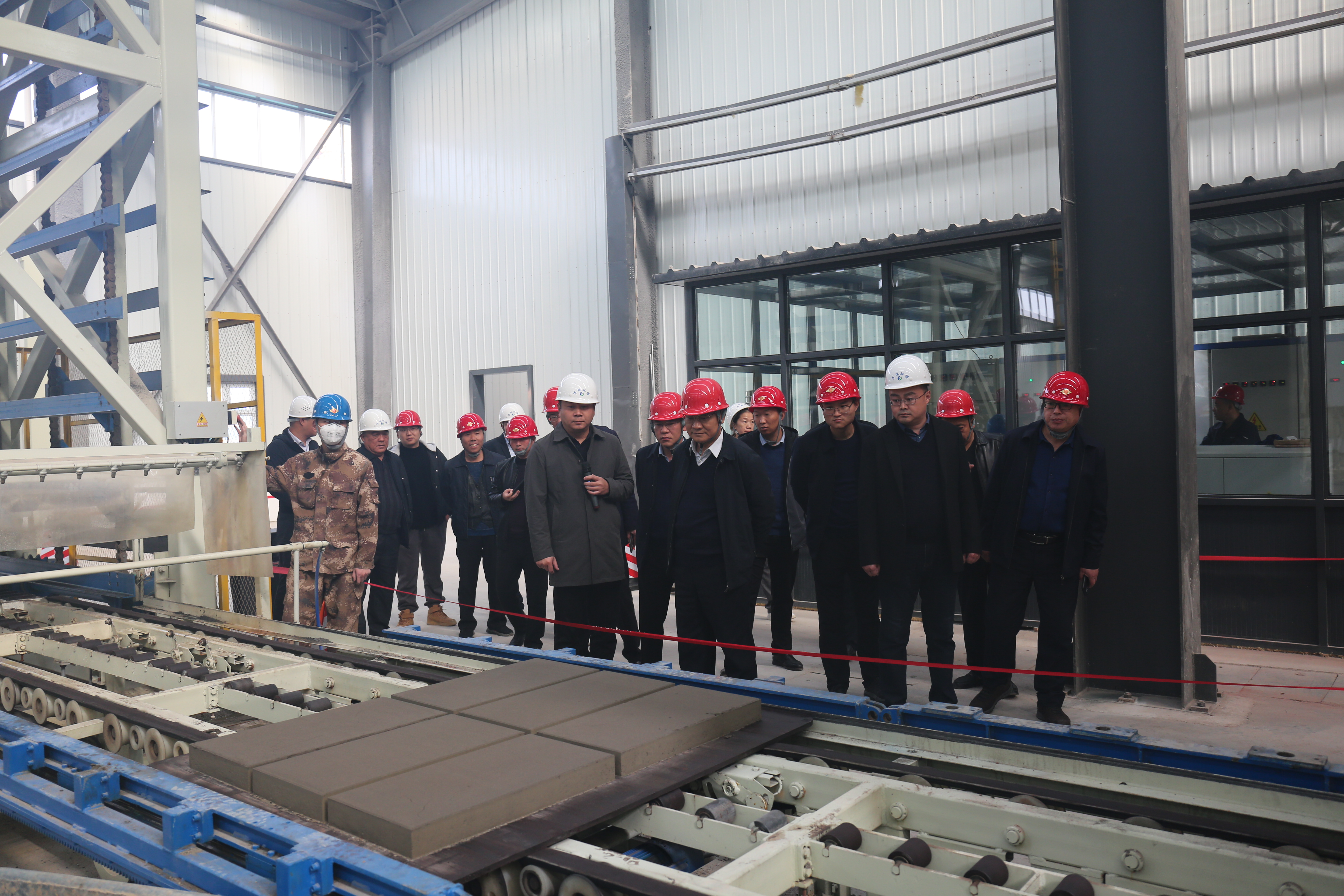 董事長(zhǎng)一行人在萬(wàn)瑞環(huán)保公司董事長(zhǎng)張海淼和其他公司高管陪同下參觀了生產(chǎn)車間,深入了解了各類資源化產(chǎn)品生產(chǎn)線的具體生產(chǎn)工藝流程,對(duì)產(chǎn)品性能和質(zhì)量進(jìn)行了各方面交流。