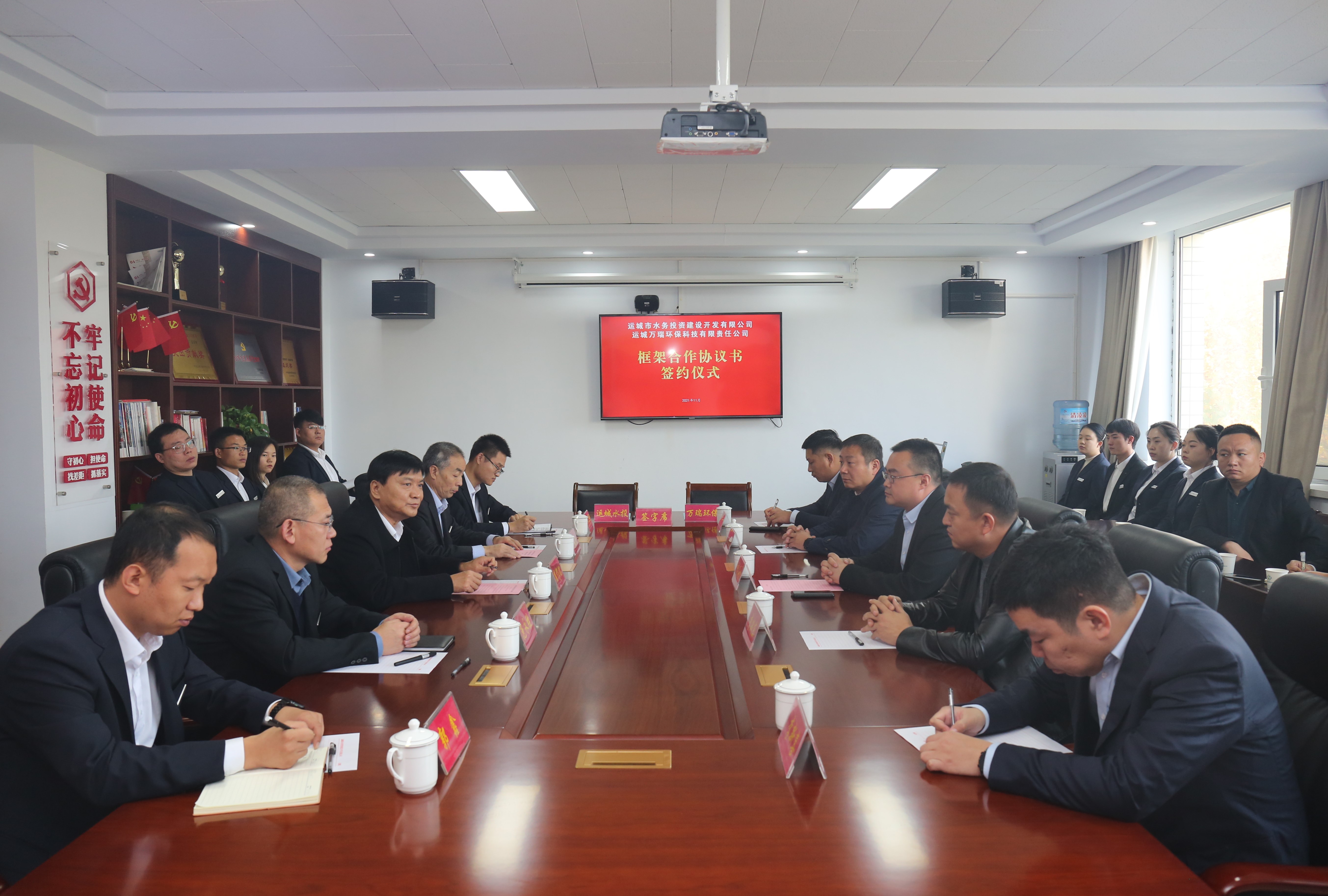 11月5日,運(yùn)城市水務(wù)投資建設(shè)開發(fā)有限公司(以下簡稱市水投公司)與運(yùn)城萬瑞環(huán)保科技有限責(zé)任公司(以下簡稱萬瑞環(huán)保公司)框架合作協(xié)議簽約儀式,在市水投公司隆重舉行。