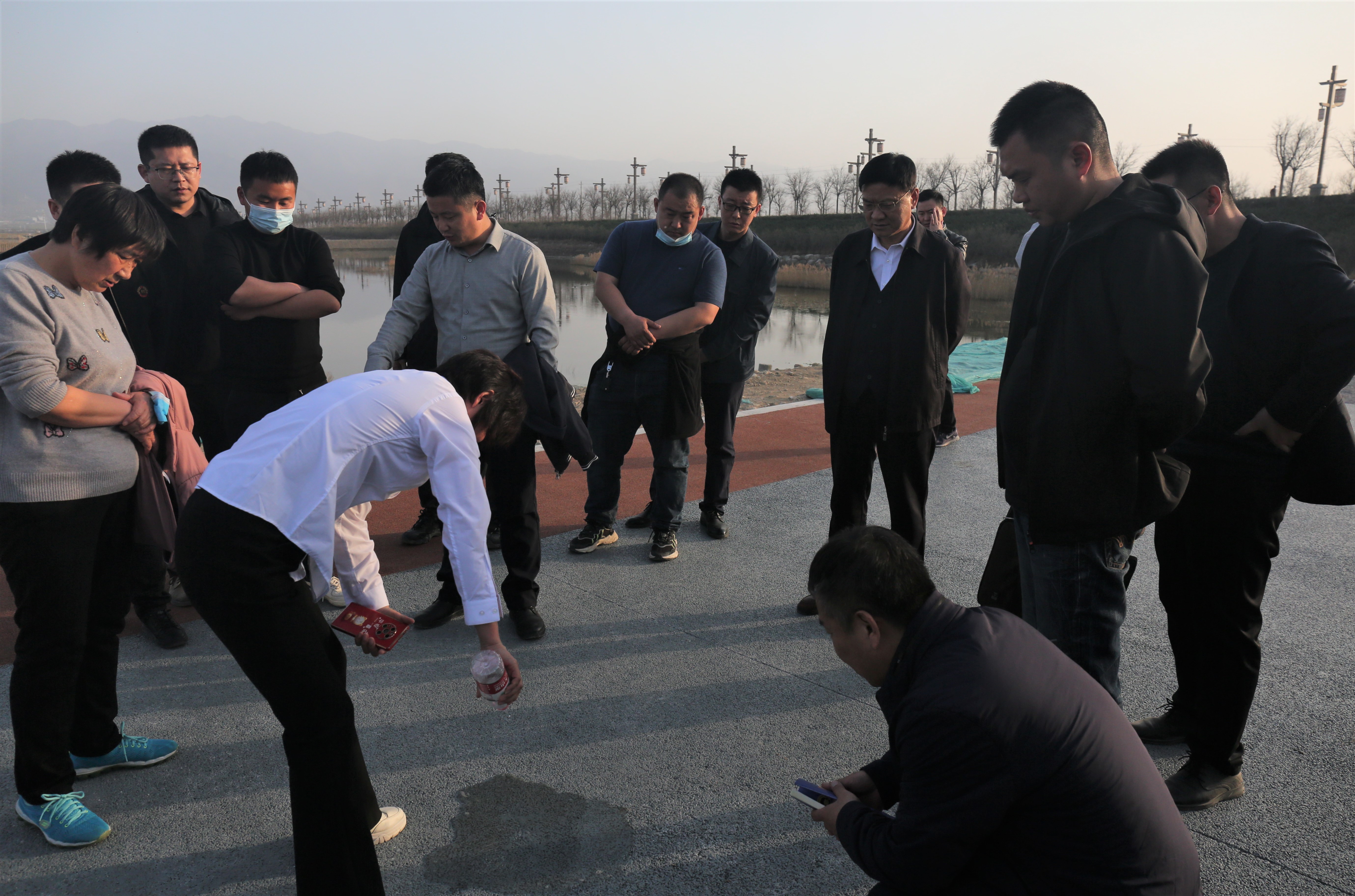 ▲測試路面滲水效果