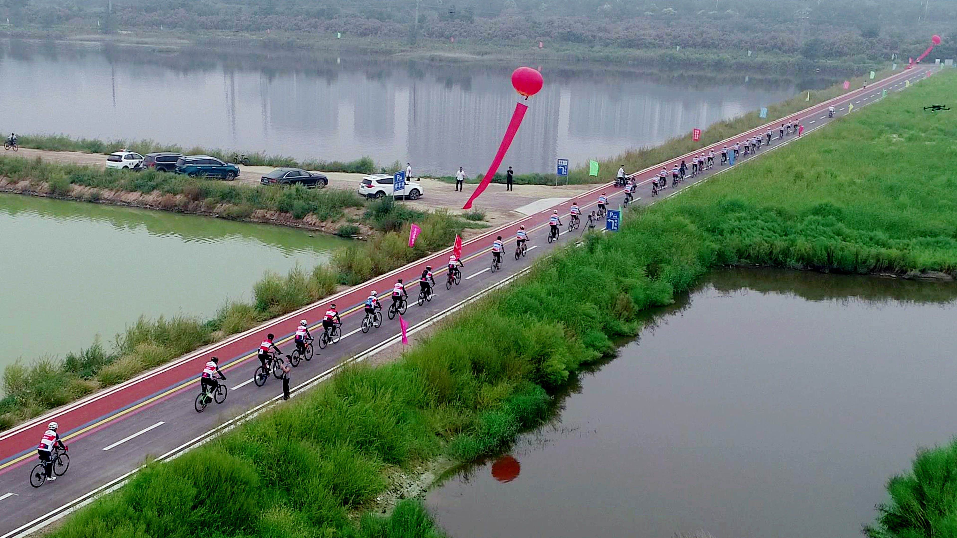 啟動儀式由鹽湖生態(tài)保護與開發(fā)中心主任孫冬青主持,市人大、市政協(xié)、市紀委監(jiān)委、市委宣傳部、市委組織部、鹽湖區(qū)委、區(qū)政府等23家市、區(qū)相關(guān)單位和各參建單位參加了啟動儀式。市水投公司董事長崔作銘介紹了鹽湖堤埝除險加固及生態(tài)修復(fù)(一期)項目建設(shè)概況,市委常委、副市長董旭光宣布七彩鹽湖綠道啟動。百 人齊聚,千鴿展翅競飛,共同見證了這一激動人心的歷史時刻。同時在這里開展了百人酷跑和騎行團隊綠色環(huán)湖行。