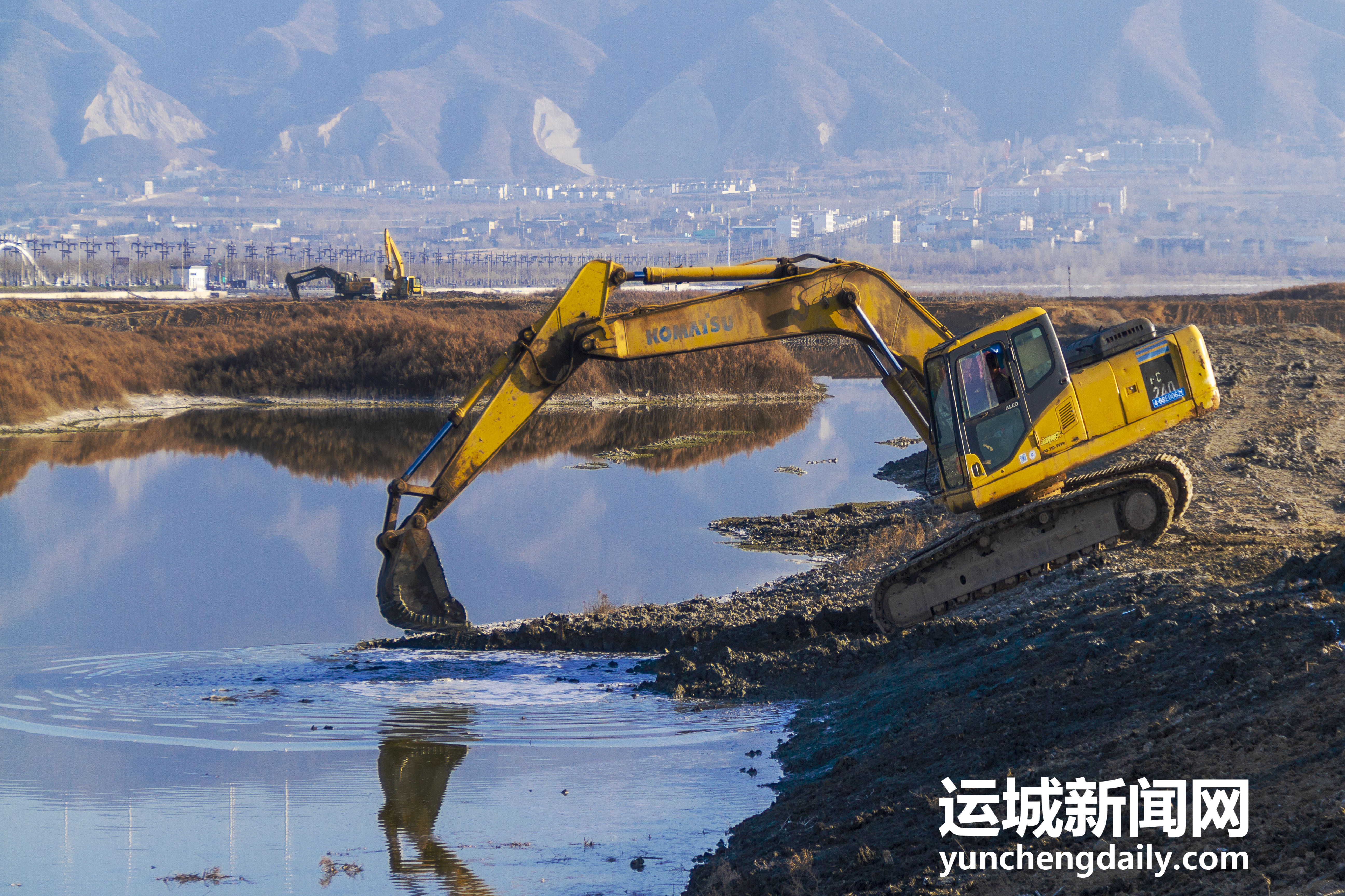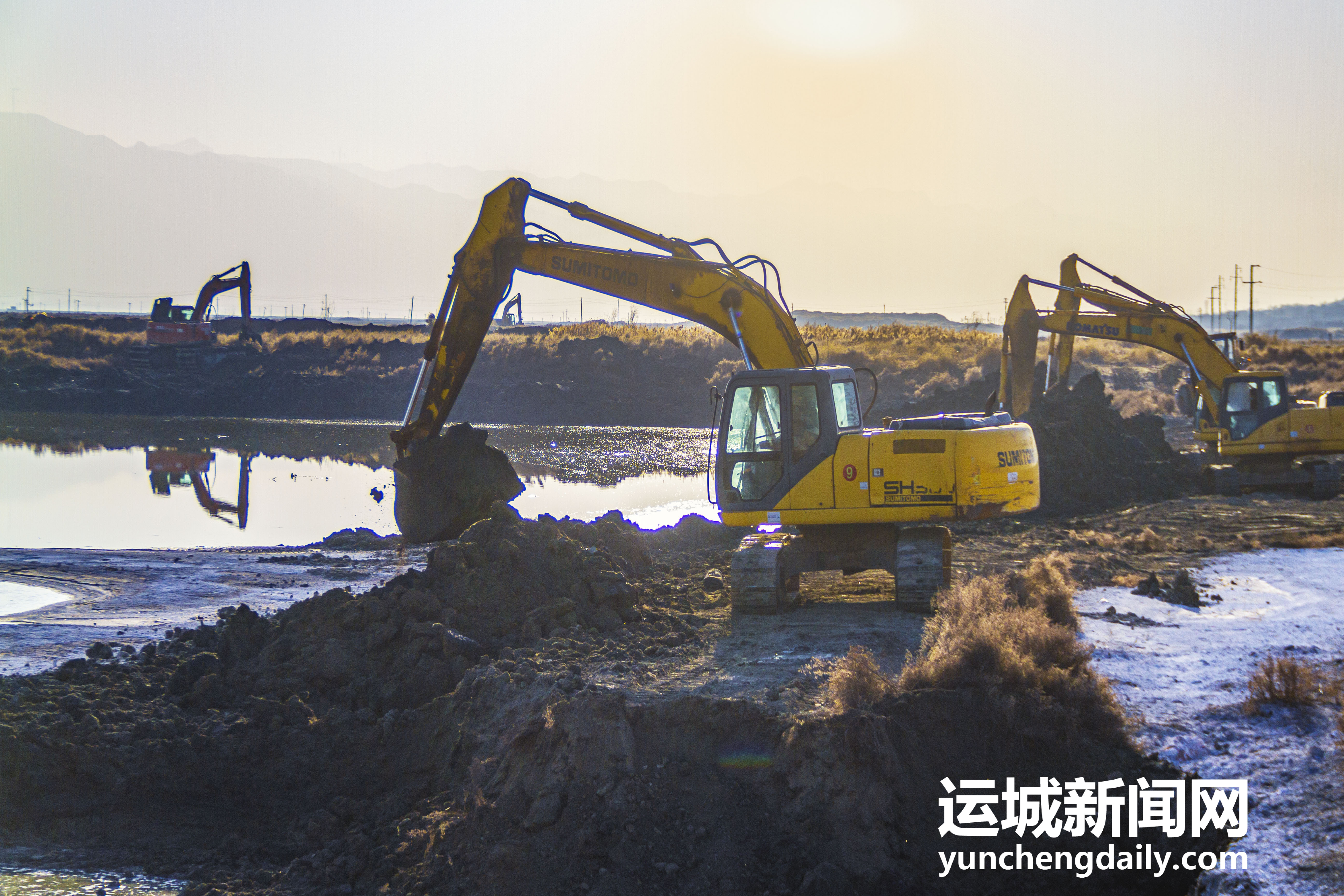 2022年12月18日,鹽湖景區(qū)內(nèi),工人師傅正在對堤埝進行除險加固。
