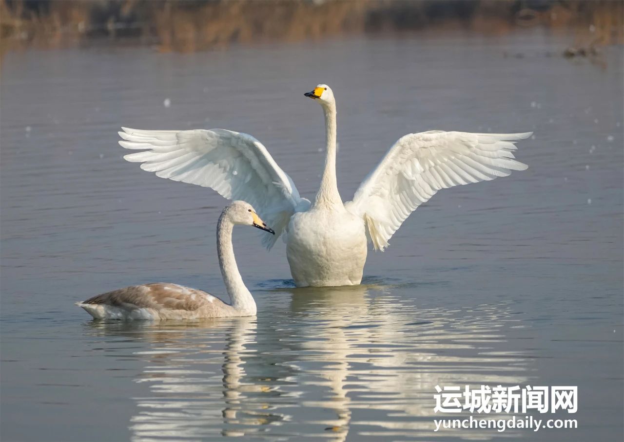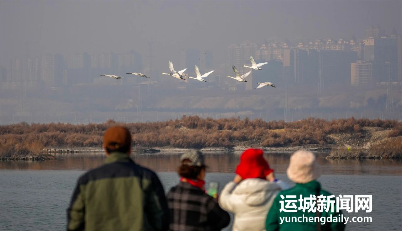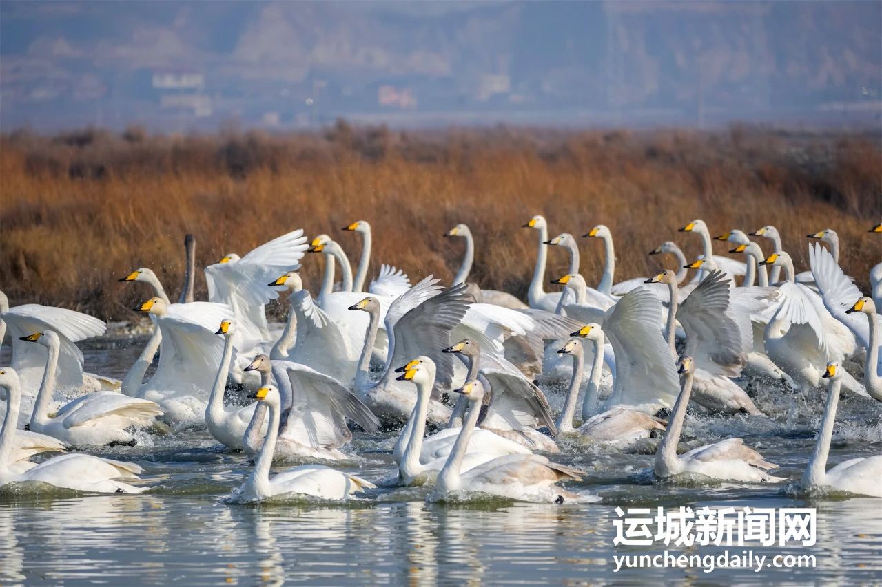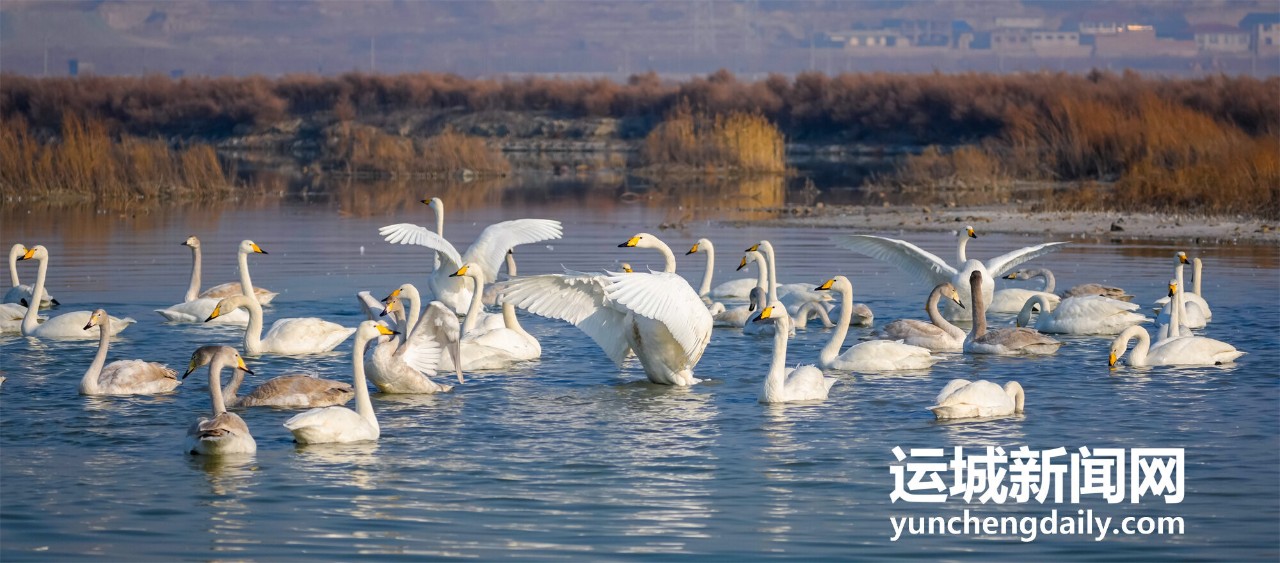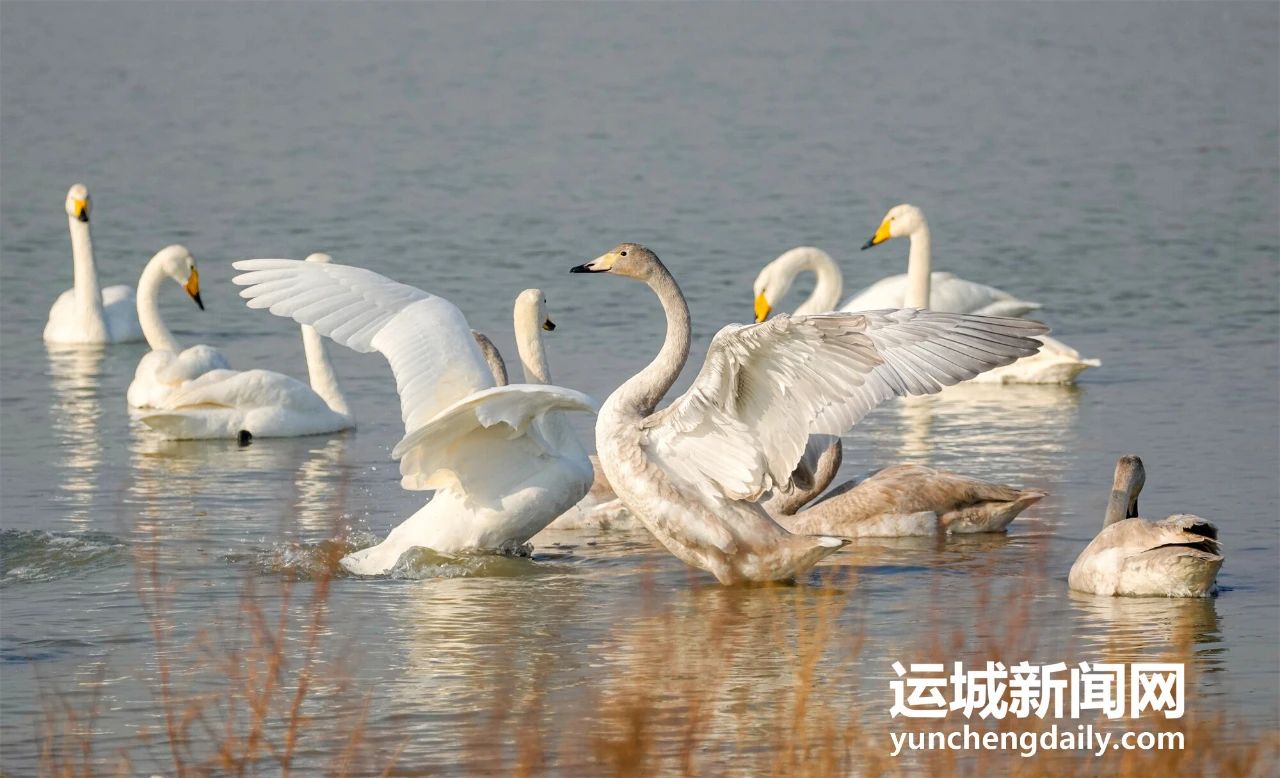 冬日時節(jié),近百只天鵝飛抵鹽湖濕地棲息越冬,它們時而嬉戲、時而飛翔,成為冬日鹽湖一道靚麗的風(fēng)景,吸引眾多游客前來觀賞。