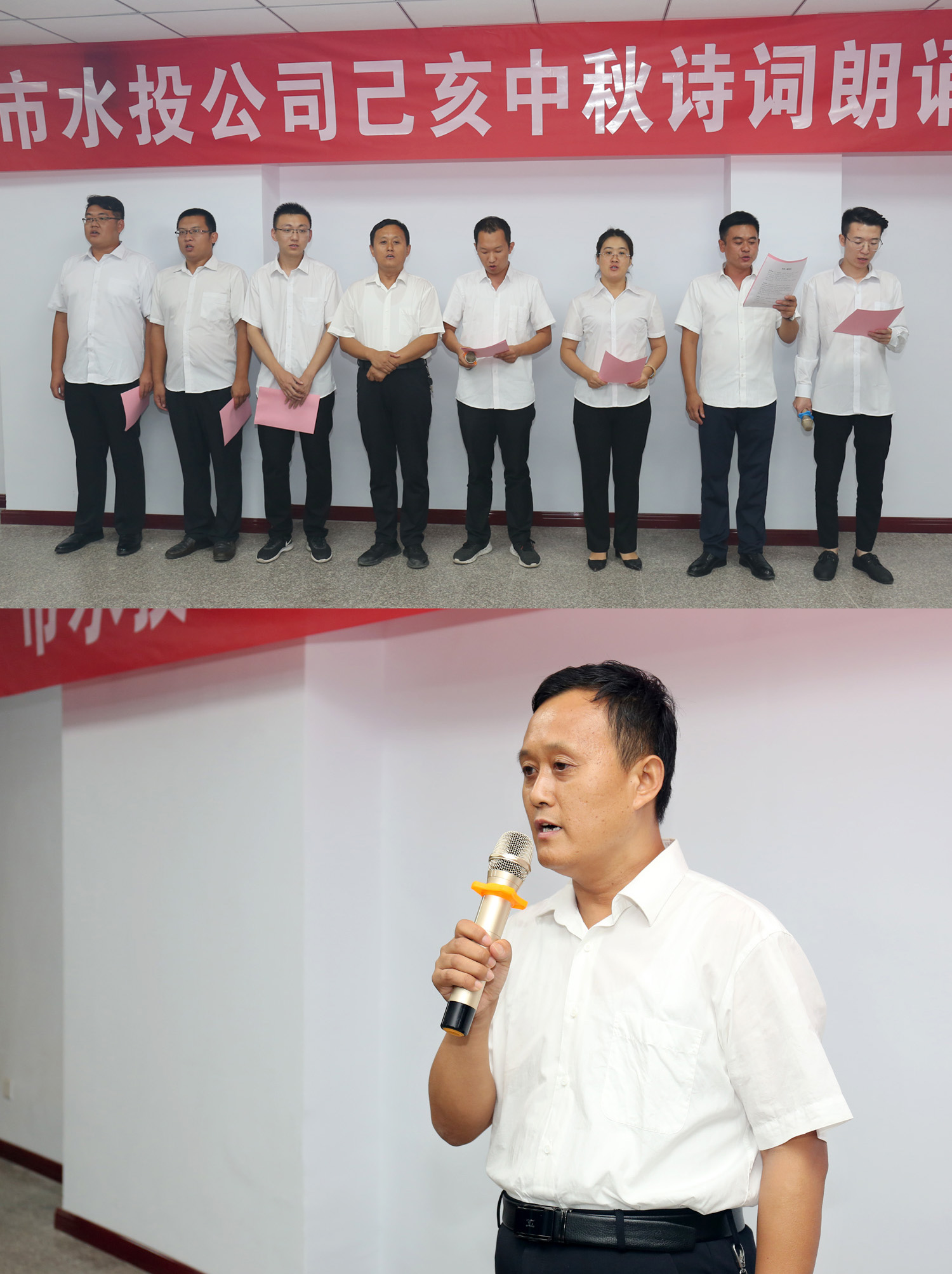 朗誦會(huì)開始前,公司黨委書記、董事長(zhǎng)兼總經(jīng)理崔作銘致辭,向為水投建設(shè)發(fā)展辛勤耕耘默默奉獻(xiàn)的全體員工致以誠摯的問候和衷心的感謝,同時(shí)預(yù)祝各位員工中秋佳節(jié)快樂家庭幸福、身體健康。他希望全體員工“守初心、擔(dān)使命,找差距、抓落實(shí)”,以“長(zhǎng)風(fēng)破浪會(huì)有時(shí),直掛云帆濟(jì)滄海”的豪情,以“千淘萬漉雖辛苦,吹盡狂沙始到金”的毅力,以抓鐵留痕,踏石留印的執(zhí)行精神,再寫傳奇,再譜新篇!
