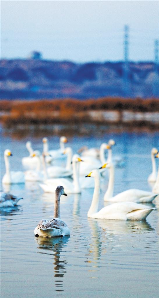 冬日暖陽下,幾十只野生天鵝在鹽湖濕地棲息,它們時而嬉戲,時而覓食,成為一道美麗的風(fēng)景,吸引眾多市民游客打卡觀賞。運城市鹽湖生態(tài)保護(hù)與開發(fā)中心的工作人員告訴記者,隨著生態(tài)環(huán)境持續(xù)向好,鹽湖已經(jīng)成為山西省鳥類多樣性最為豐富的區(qū)域之一,越來越多的候鳥前來過冬。與往年相比,天鵝的數(shù)量明顯增加。