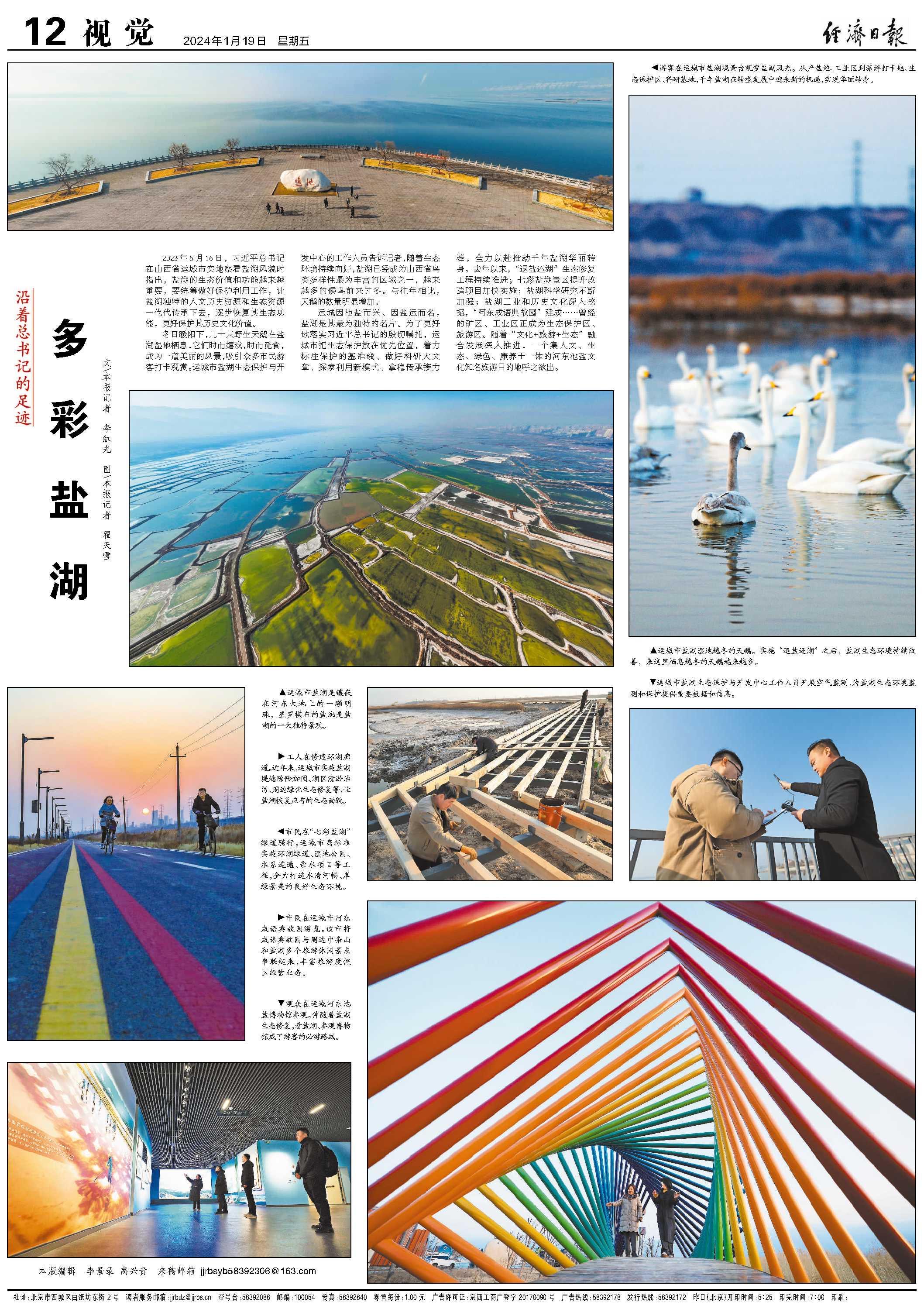 運城因池鹽而興、因鹽運而名,鹽湖是其最為獨特的名片。為了更好地落實習(xí)近平總書記的殷切囑托,運城市把生態(tài)保護(hù)放在優(yōu)先位置,著力標(biāo)注保護(hù)的基準(zhǔn)線、做好科研大文章、探索利用新模式、拿穩(wěn)傳承接力棒,全力以赴推動千年鹽湖華麗轉(zhuǎn)身。去年以來,“退鹽還湖”生態(tài)修復(fù)工程持續(xù)推進(jìn);七彩鹽湖景區(qū)提升改造項目加快實施;鹽湖科學(xué)研究不斷加強;鹽湖工業(yè)和歷史文化深入挖掘,“河?xùn)|成語典故園”建成……曾經(jīng)的礦區(qū)、工業(yè)區(qū)正成為生態(tài)保護(hù)區(qū)、旅游區(qū)。隨著“文化+旅游+生態(tài)”融合發(fā)展深入推進(jìn),一個集人文、生態(tài)、綠色、康養(yǎng)于一體的河?xùn)|池鹽文化知名旅游目的地呼之欲出。