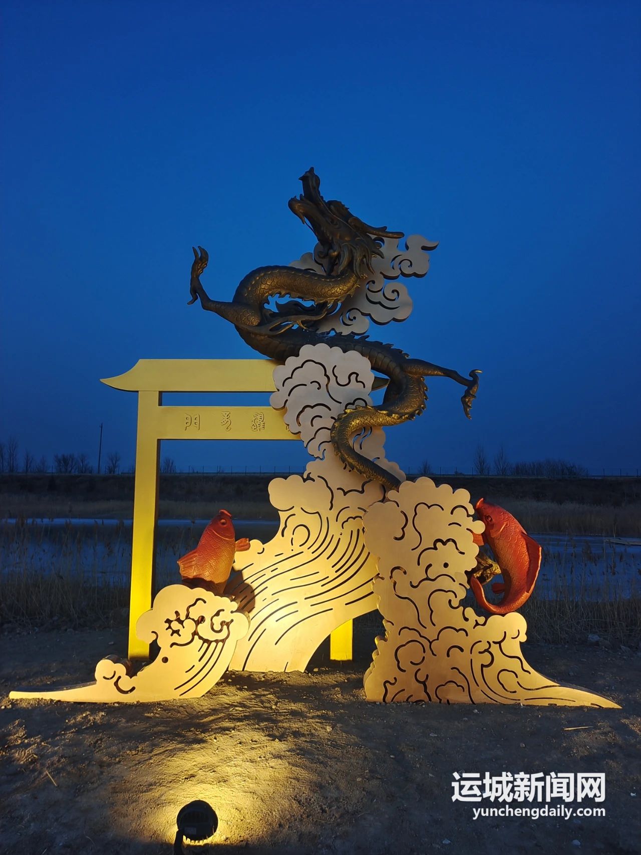 “鯉躍龍門”雕塑,魚躍龍門,鯉魚化龍,栩栩如生,比喻人要改變命運,必定逆流而上,奮發(fā)圖強,總有成功之日……